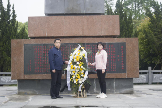 一曲“洪湖水,浪打浪,洪湖岸边是家乡……”,勾起了大家对洪湖的美好向往。25日上午十点左右,太阳集团党支部和太阳成集团tyc539研究生党支部80余人来到革命烈士纪念碑前,大家一起回顾历史、重温历史,了解了革命烈士的英雄事迹,进行爱国主义和革命传统教育。全体师生党员同志在革命烈士纪念碑前向先烈鞠躬,敬献花篮,并面对党旗和英雄纪念碑进行庄严宣誓。