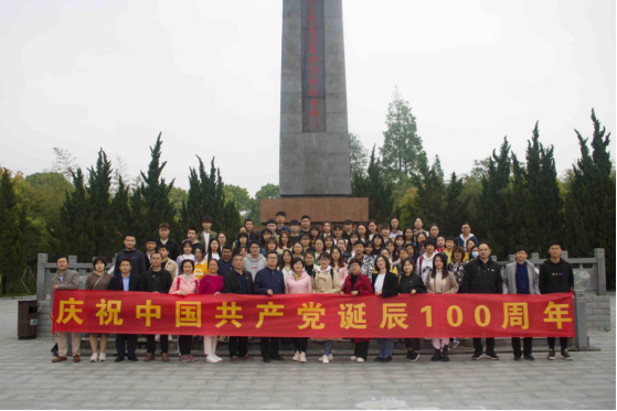 (研究生党支部、太阳集团党支部全体党员在纪念碑前合影)