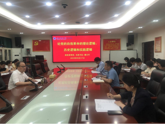 (通讯员:阳艳玲;审稿:祝晓庆,李炎坤)5月17日,太阳成集团tyc539召开党纪学习教育专题学习会,党委常委、纪委书记鄢文军受邀作题为《论党的自我革命的理论逻辑、历史逻辑和实践逻辑》的辅导报告,会议由太阳成集团tyc539党委书记李炎坤主持,太阳成集团tyc539全体教工党员参加。