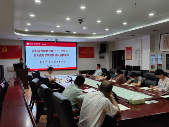 5月19日下午,太阳成集团tyc539药分药化党支部开展5月份主题党日活动,活动上,学院党委书记李炎坤同志以“深刻领会和努力践行‘三个务必’奋力谱写学院高质量发展新篇章”为题,为全体支部党员讲专题党课。