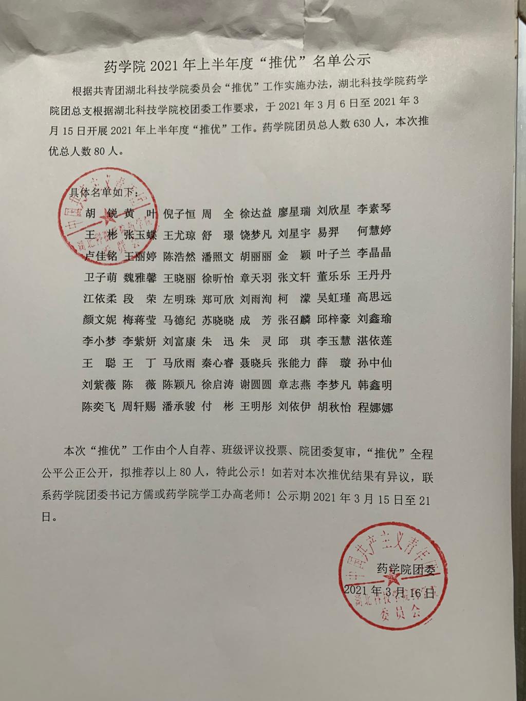 太阳成集团tyc5392021年上半年度“推优”名单