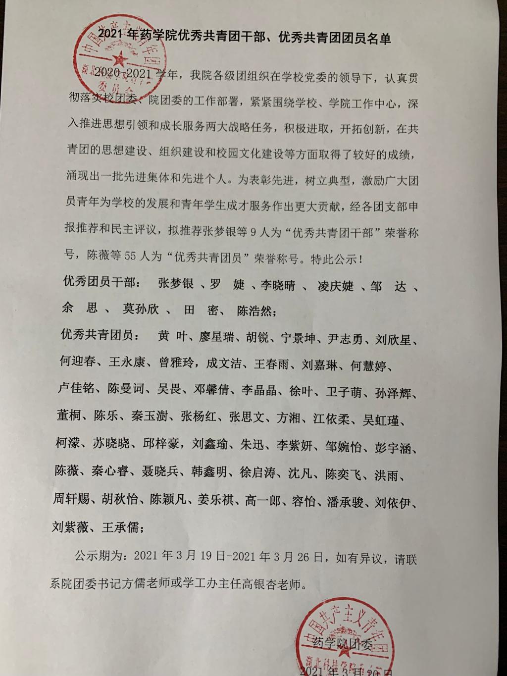 2021年太阳成集团tyc539“五四”优秀共青团干部、优秀共青团员名单
