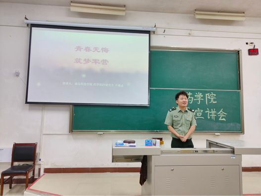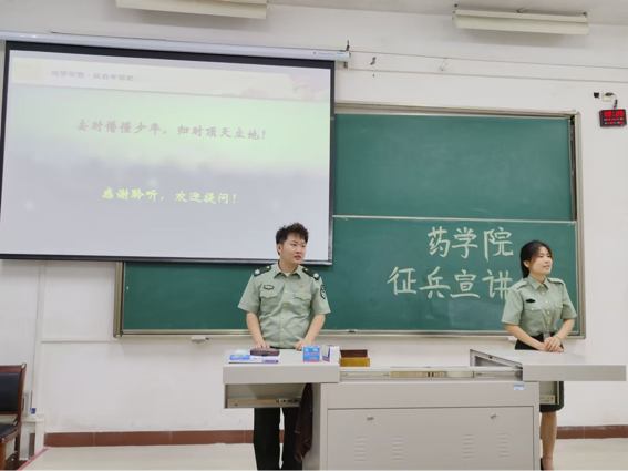 参军报国终不悔,驰骋疆场燃青春。当渴望遇上甘泉,梦想将会开花;当青春遇上磨砺,价值得以闪亮。两位宣讲人用不凡的经历激励广大药院学子通过参军把衷心献给祖国,把青春献给军营,做有理想,敢担当,能吃苦,肯奋斗的新青年,在磨练中成长,在青春中闪耀!