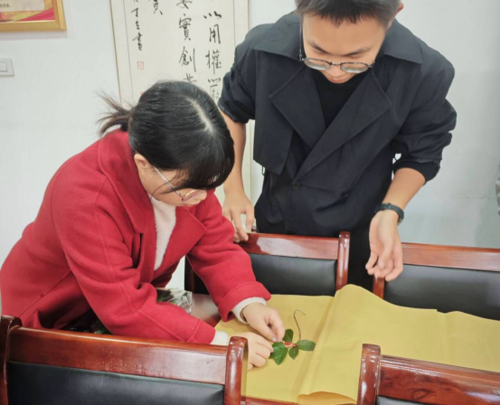 采药活动结束后,师生一同参观了学院中草药标本馆。在老师指导下,学生们系统学习了标本制作的流程。精心修整药材枝叶、摆出各具美感的造型、将牛皮纸轻覆其上、手持工具轻压,标本的轮廓逐渐呈现,同学们在实践中深切感悟中药文化之美。