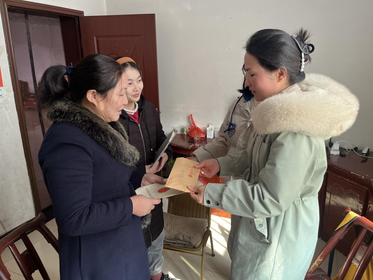 家访过程中,学院师生一行与学生、学生家长促膝长谈,深入了解学生健康状况,祝晓庆向学生介绍学校学籍相关管理制度,并达了学校、学院的关心和积极努力,同时认真听取学生的抗癌心路历程,以及生活情况并为学生颁发了在校期间获得的奖状,送去了全班同学共同制作的祝福手册,学生看着一句句诚挚的祝福红了眼眶。“真没想到学院领导老师会到家里来看孩子,我都不知道该说什么了!”学生家长在送别时紧紧握着老师的手久久不愿松开。
