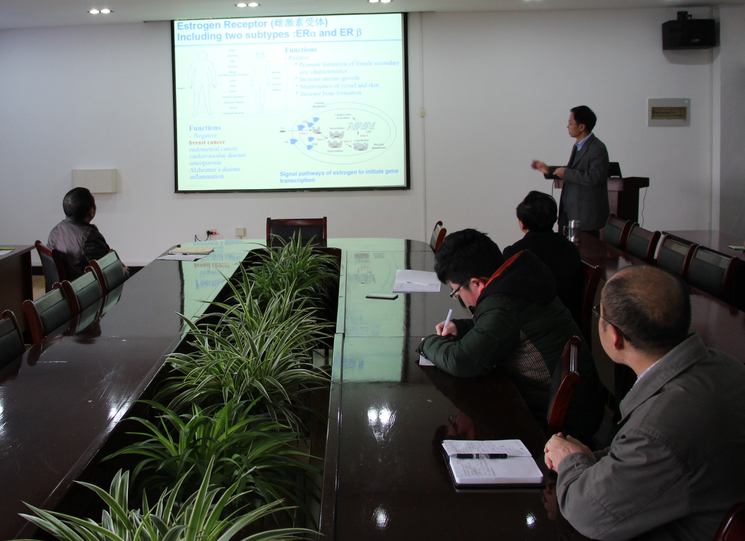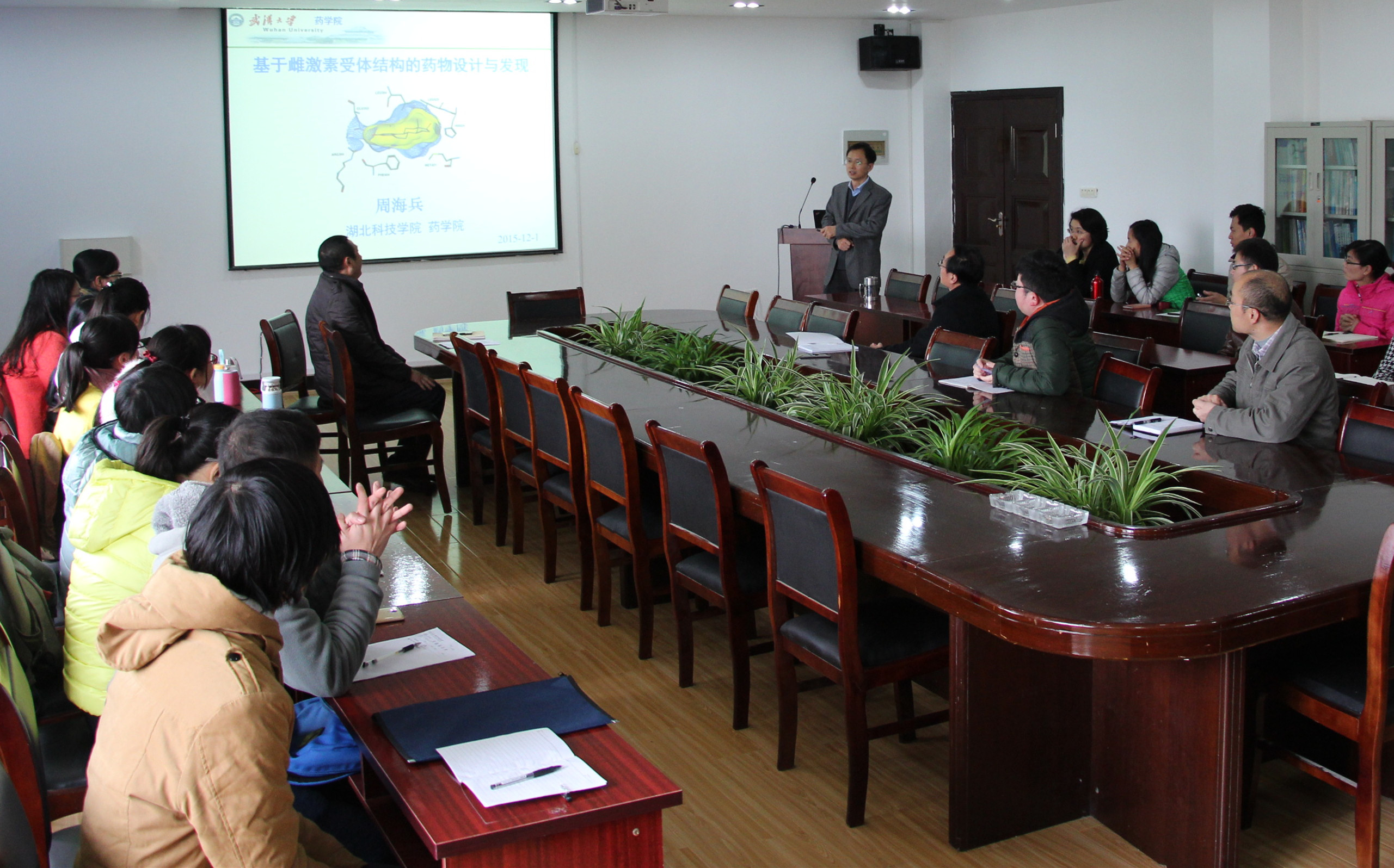 2015年12月1日 ,下午两点三十分,来自武汉大学珞珈学者特聘教授、病毒学国家重点实验室学术带头人周海兵教授,莅临我校做关于“抗肿瘤药物研究”学术报告,太阳成集团tyc539全体领导、老师、研究生参加报告。