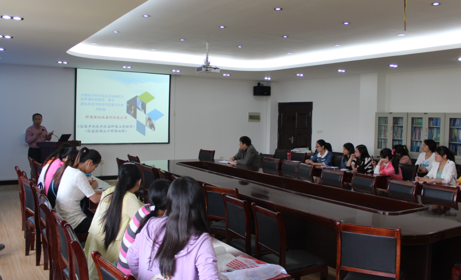 10月24日下午,太阳成集团tyc539“揽月学者”刘滨磊教授应邀为师生们作了主题为“肿瘤靶向病毒的临床应用”的学术报告。多位相关专业领域的老师及研究生同学参加了讲座。